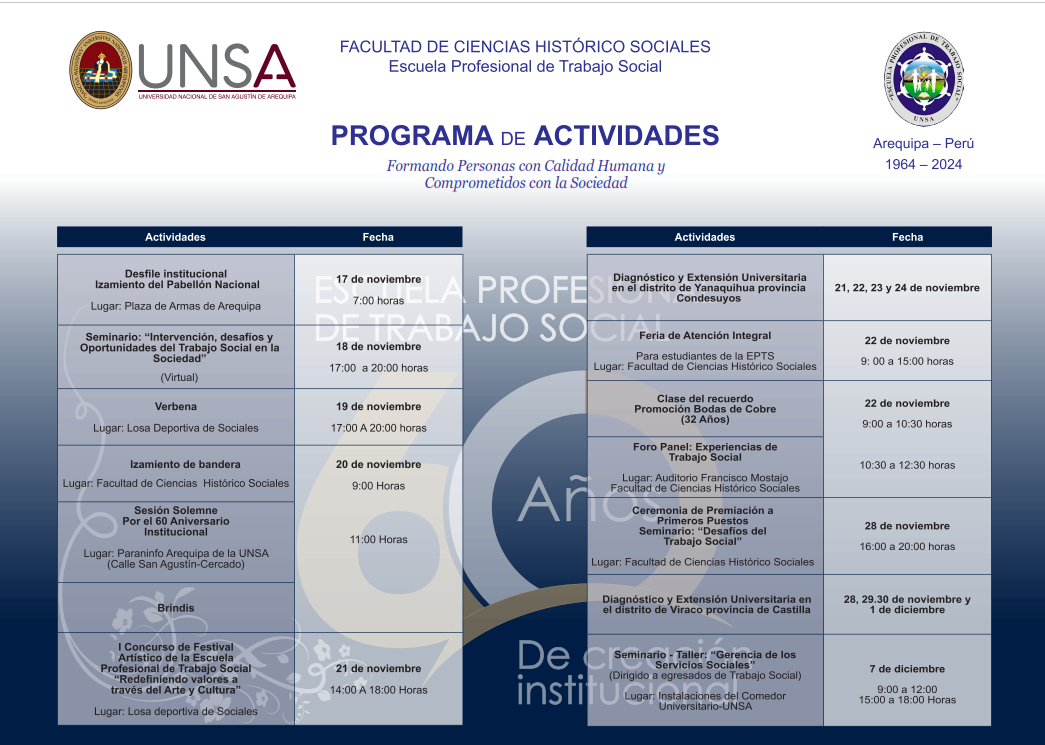 LX Aniversario de Creación Institucional de la Escuela Profesional de Trabajo Social