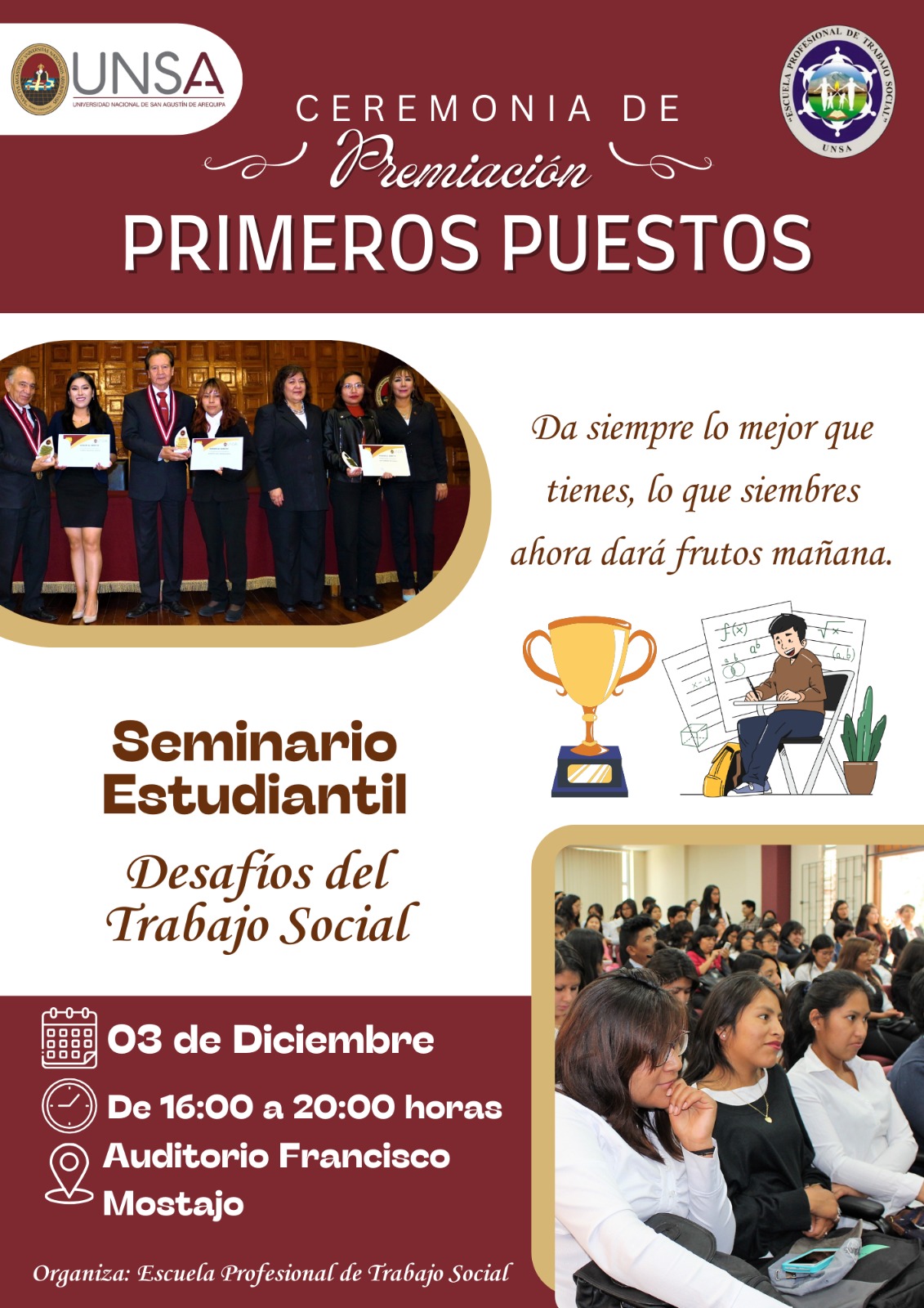 CEREMONIA DE PREMIACIÓN A PRIMEROS PUESTOS Y SEMINARIO “DESAFÍOS DEL TRABAJO SOCIAL”